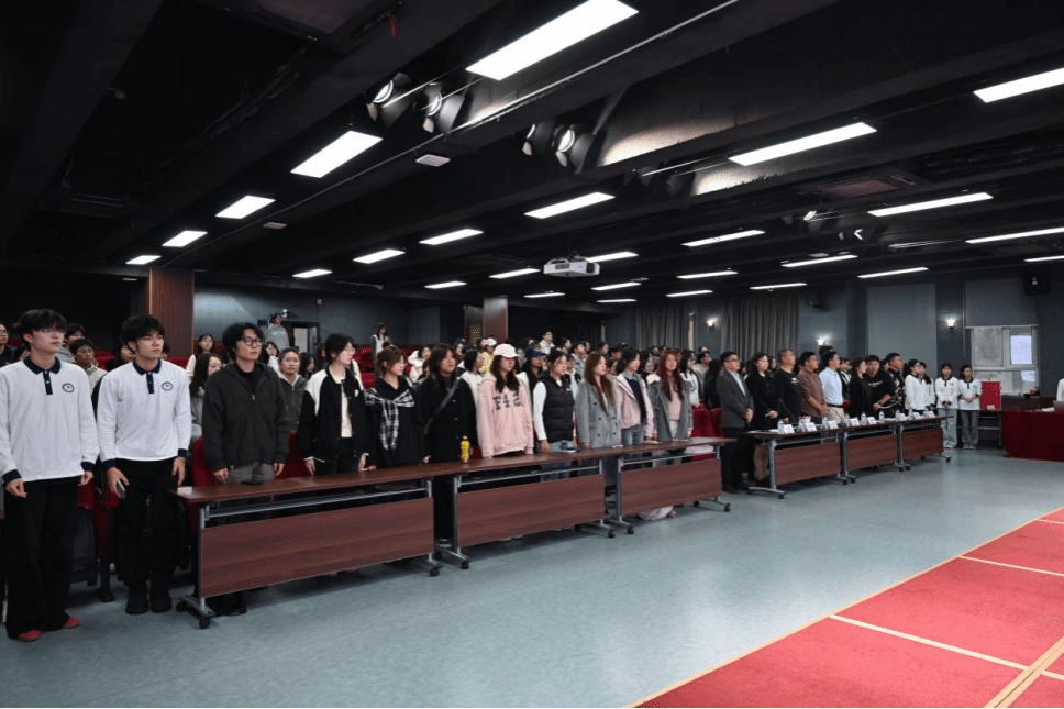 本次换届竞选严格遵循流程,经学生自主报名、学院多轮严格审查后,共确定7名团学组织负责人提名人选。大会开场,全体参会人员起立,高唱中华人民共和国国歌,在庄严的氛围中正式开启换届竞选环节。