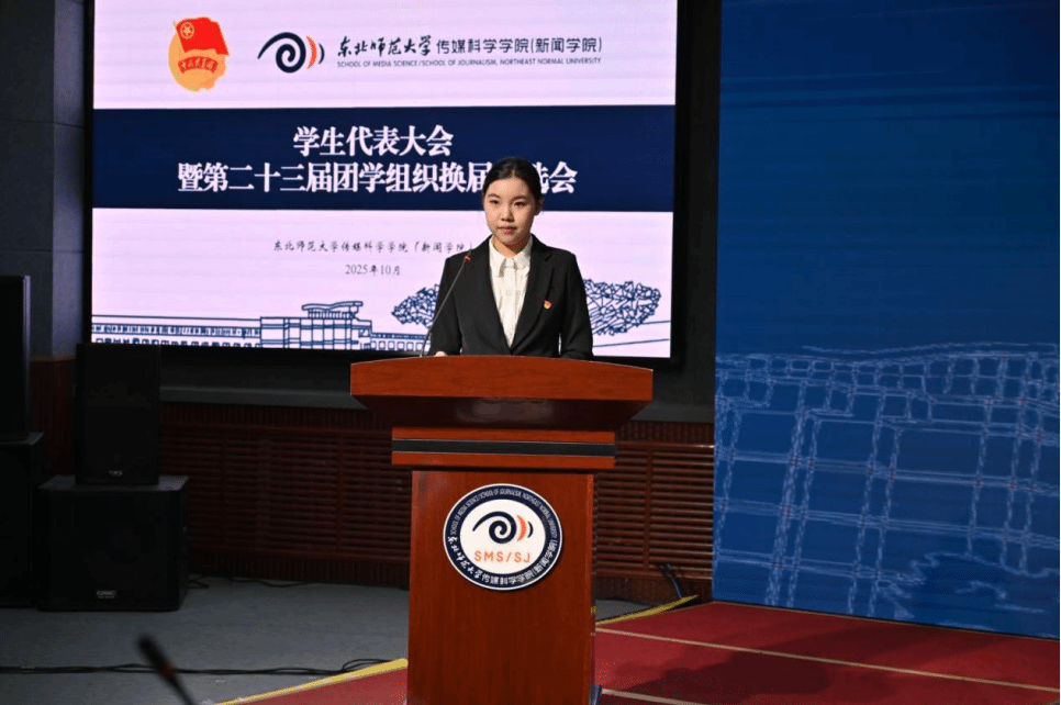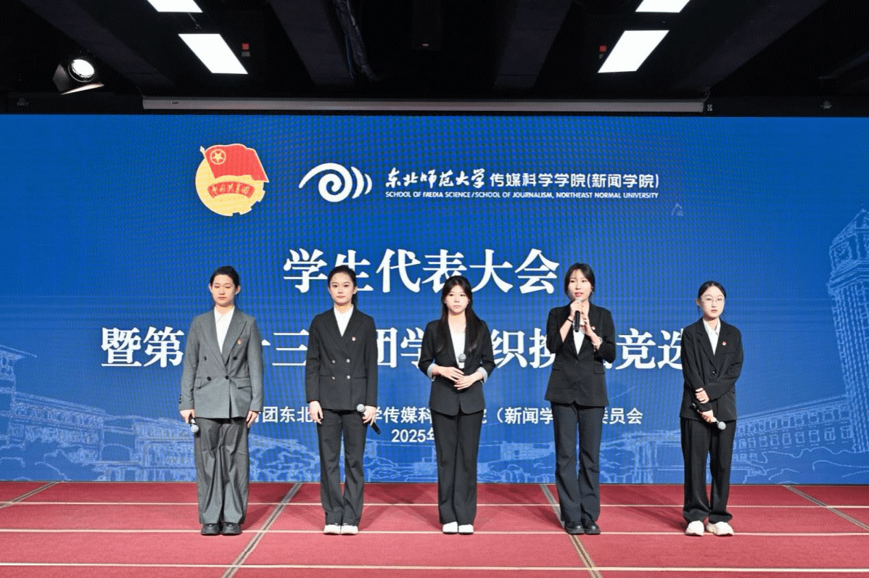 大会最后,全体人员齐唱中国共产主义青年团团歌,本次学生代表大会暨团学组织换届竞选会圆满落幕。站在新的发展起点,面对新的挑战与机遇,新一届团学组织将在学校党委、校团委及学院党委的领导下,坚守服务宗旨,凝聚团队力量,为丰富校园文化生活、培养“新时代美的红色传媒人”、谱写东北师范大学传媒科学学院(新闻学院)发展新篇章贡献青春力量。