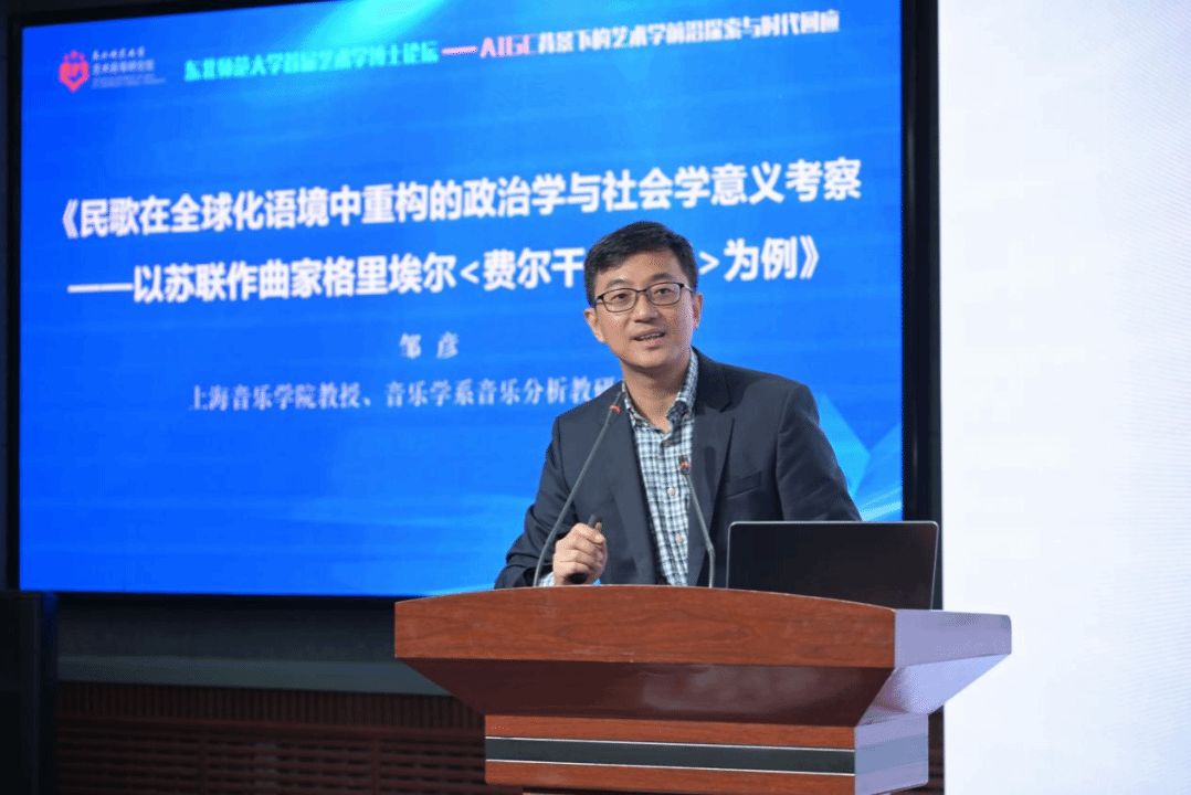 上海音乐学院教授、音乐学系音乐分析教研室主任邹彦发言的题目是《民歌在全球化语境中重构的政治学与社会学意义考察——以苏联作曲家格里埃尔<费尔干的节日>为例》。他指出《费尔干的节日》揭示了保持文化身份的重要性:真正的文化差异并非通过被固定为国家叙事中的“装饰”实现,而应在“游牧”的流动性中保存其生成力。唯有承认并保护这种不被完全规训的游牧特质,民族文化才能在跨文化语境中保持其独立性与生命力。