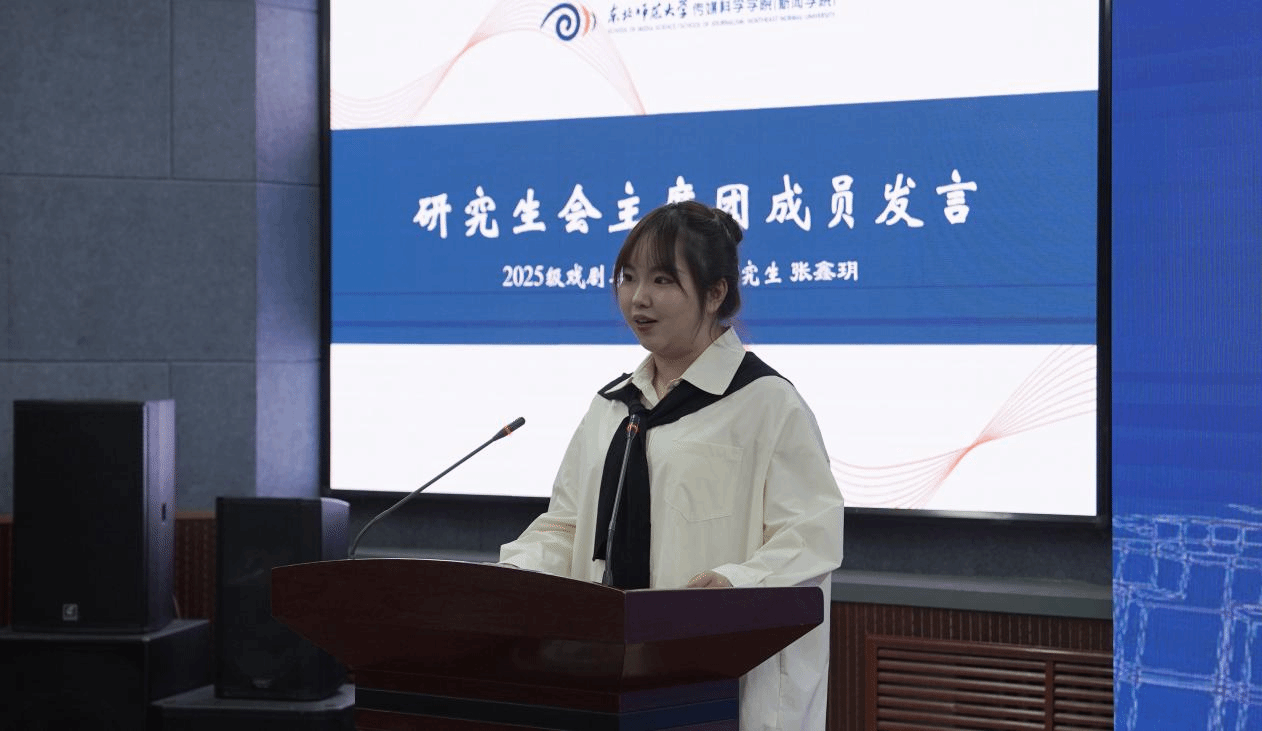 研究生会主席团成员2025级戏剧与影视专业研究生张鑫玥同学表明新一届研究生会将立足研究生群体的实际需求,聚焦三大方向:做贴心的倾听者,及时回应学术科研、资源对接等具体问题;做专业的搭建者,通过影视工作坊等形式推动学界业界联动,促进专业能力提升;做温暖的同行者,组织轻量化活动营造归属感。她强调将秉持“只干实在事”的原则,以共情力和执行力服务同学,拒绝形式主义,力求交出用心答卷。