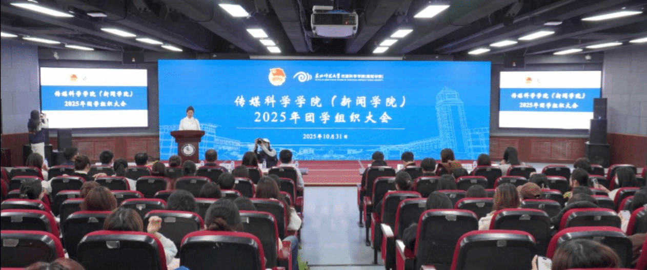 为落实团学组织的工作内容,加强团学组织连接学院与学校的桥梁,东北师范大学传媒科学学院(新闻学院)2025年团学组织大会于2025年10月31日12:00在我院123多功能放映厅隆重召开。传媒科学学院(新闻学院)党委书记关丰富、党委副书记兼副院长张丽伟、专职组织员艾力国、研究生教务秘书刘美璐、2025级研究生辅导员徐欣、团委书记兼2025级本科生辅导员郎庆敏、2024级本科生辅导员王翘楚、2023级本科生辅导员庞温馨、2022级本科生辅导员佟棹楠及全体团学组织成员参会。学生会主席团成员纪则羽同学担任本次活动主持人。