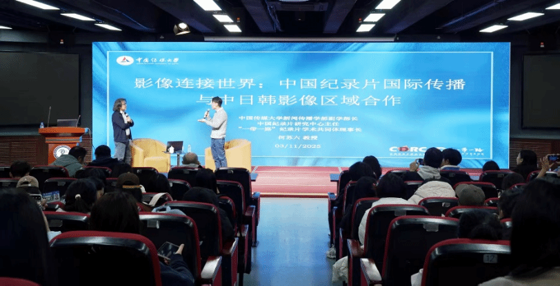 研讨会邀请到纪录片与国际传播领域权威专家、中国传媒大学新闻传播学部副学部长、中国纪录片研究中心主任何苏六教授担任主讲嘉宾,东北师范大学日韩传播研究中心执行主任李在荣副教授担任学术主持。何教授以“中国纪录片国际传播与中日韩影像区域合作”为题,系统梳理了中国纪录片国际传播的发展历程、重要政策及国内外代表性作品,并结合中国纪录片研究中心与“一带一路”纪录片学术共同体(BriDoc)的实践经验,分享了中国纪录片在国际传播中的机构协作与机制建设,就中日韩纪录片区域合作的可行路径与未来展望提出了建设性意见。最后,还围绕“中国纪录片的主体性反思与学派构建”进行了阐释。互动环节气氛热烈。