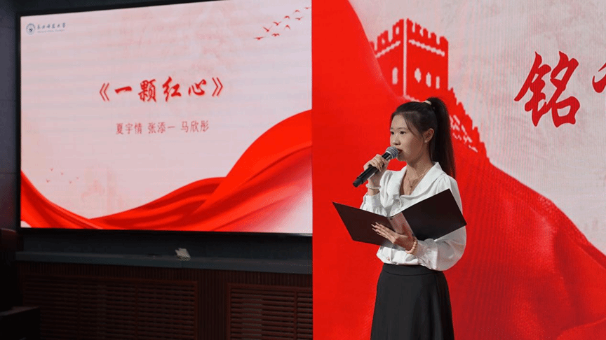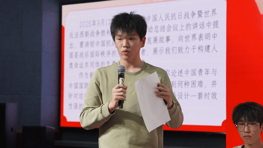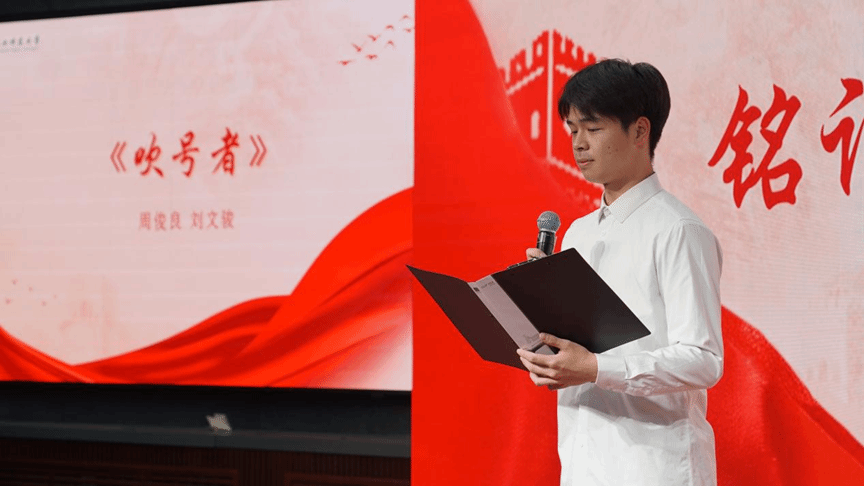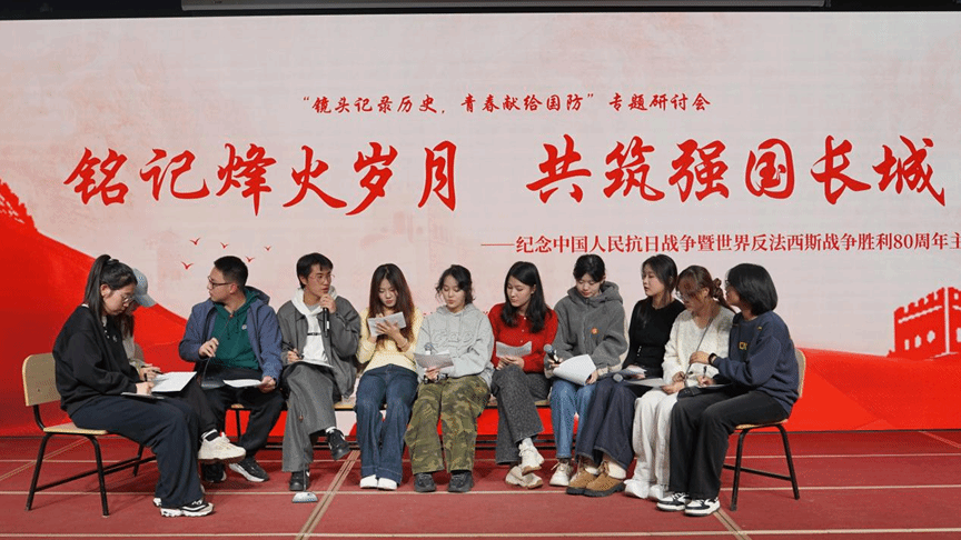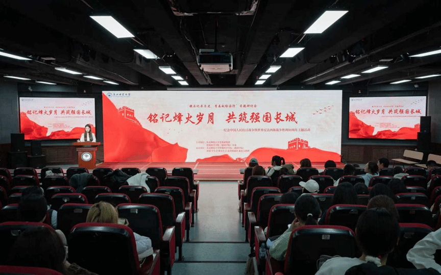为纪念中国人民抗日战争暨世界反法西斯战争胜利80周年,增强同学们的爱国意识以及引导青年学子铭记历史、传承红色精神、强化国防观念,2025年11月5日18:00,东北师范大学党委武装部、传媒科学学院(新闻学院)党委于学院123多功能放映厅联合主办“铭记烽火岁月,共筑强国长城”主题活动,活动通过情景演绎、诗文朗诵、无领导小组讨论等形式,增强了红色教育的吸引力,使红色思想和国防理念更加直观生动。