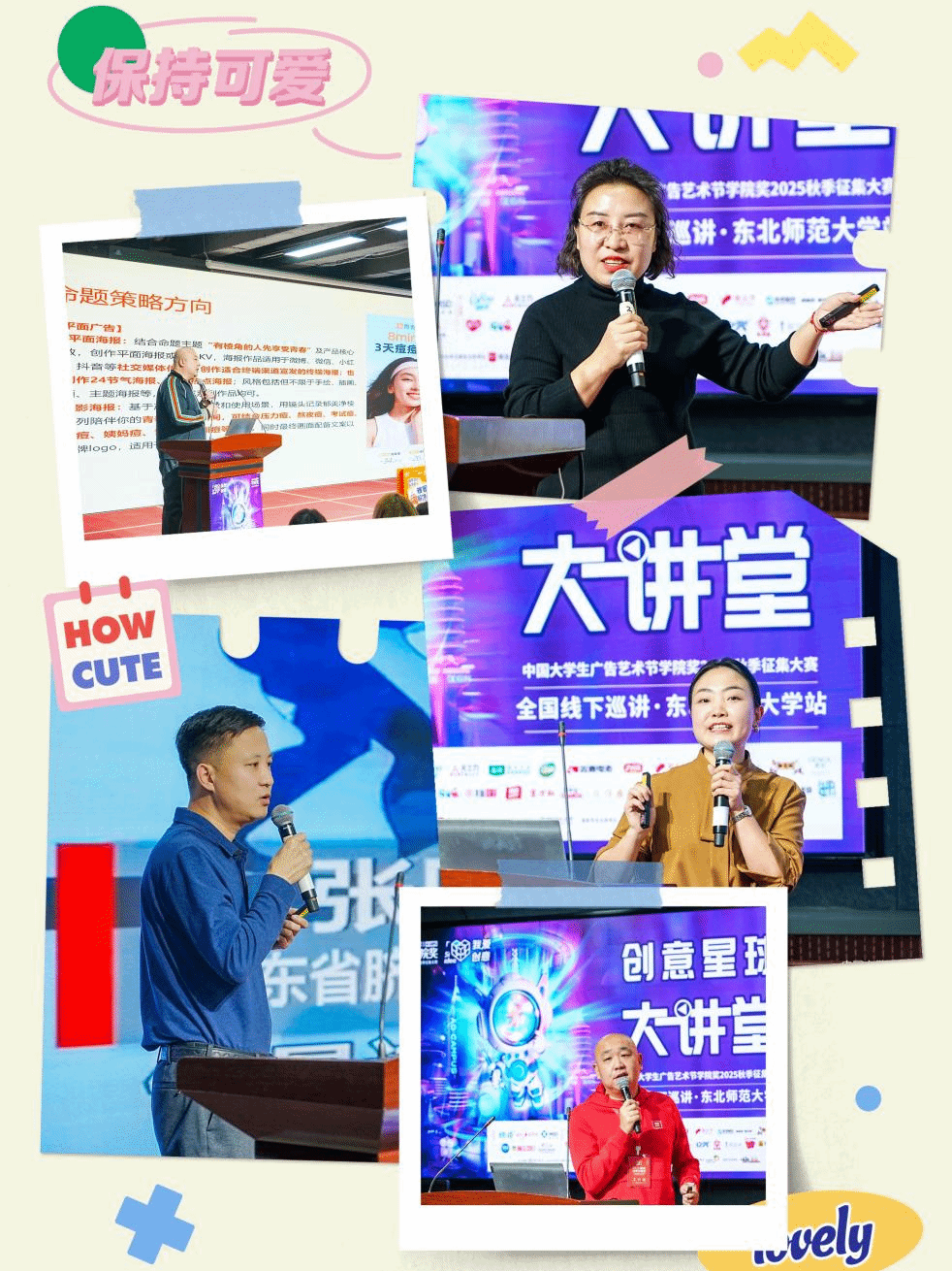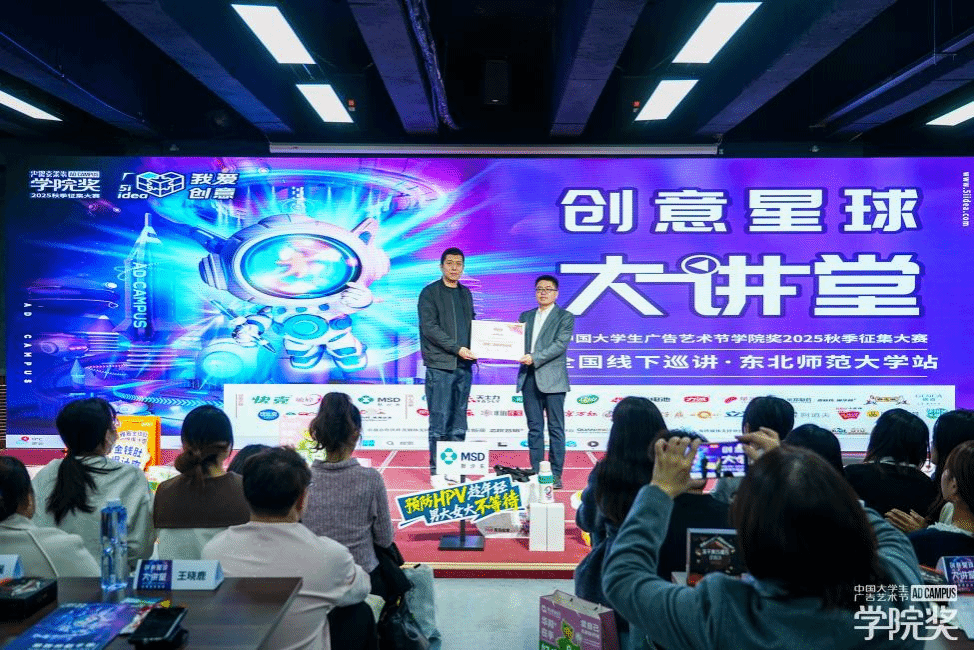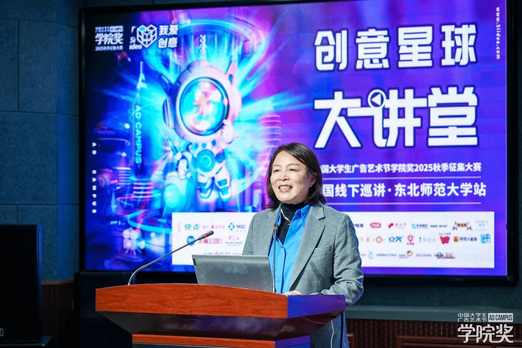 11月5日,中国大学生广告艺术节学院奖2025秋季征集大赛实践课程——创意星球大讲堂在东北师范大学传媒科学学院(新闻学院)精彩开讲,创意的火花继续在此绽放。本次活动以“创意不止·席卷中华”为主题,由中国大学生广告艺术节学院奖组委会主办,东北师范大学承办,汇聚了来自校内外的专家学者、命题企业代表与青年创意学子,共同探索广告创意的无限可能。